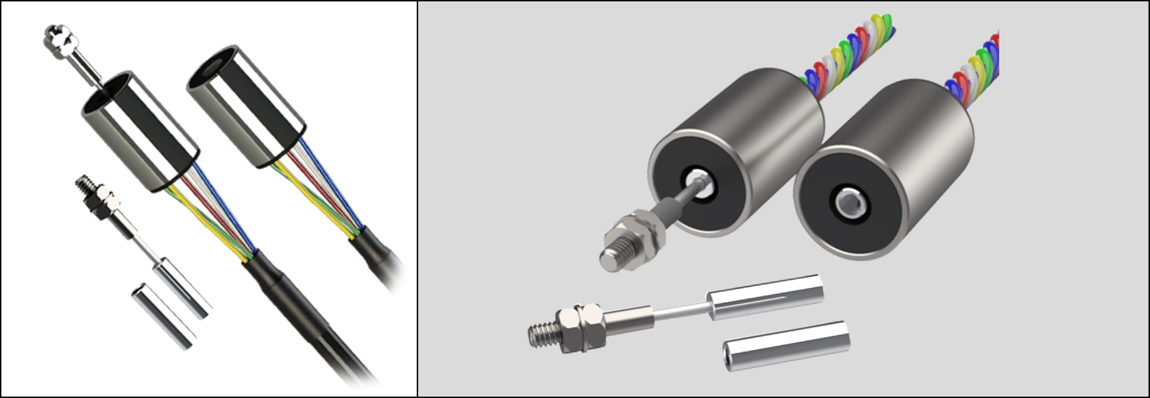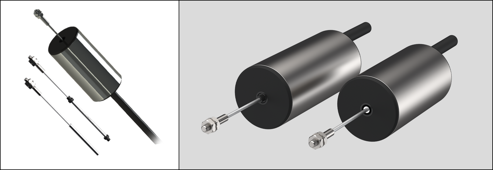 The DF dc miniature displacement sensor has a friction-free core and the DFg has a free guided core incorporating Delrin bearings. All types incorporate a linear variable differential transformer (LVDT) as the measuring source together with oscillator, demodulator and filter providing a self-contained unit accepting a DC input and providing a DC output relative to armature position.